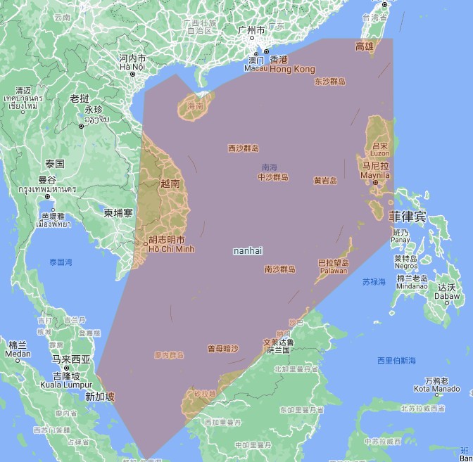 区域坐标:117.69653 23.06962,122.08008 23.05952,122.17896 11.40465,106.69922 -2.64676,103.54614 2.73456,105.84229 9.64408,106.61133 19.97335,108.54492 21.04349,110.03906 19.58049,111.44531 20.41672,117.69653 23.06962