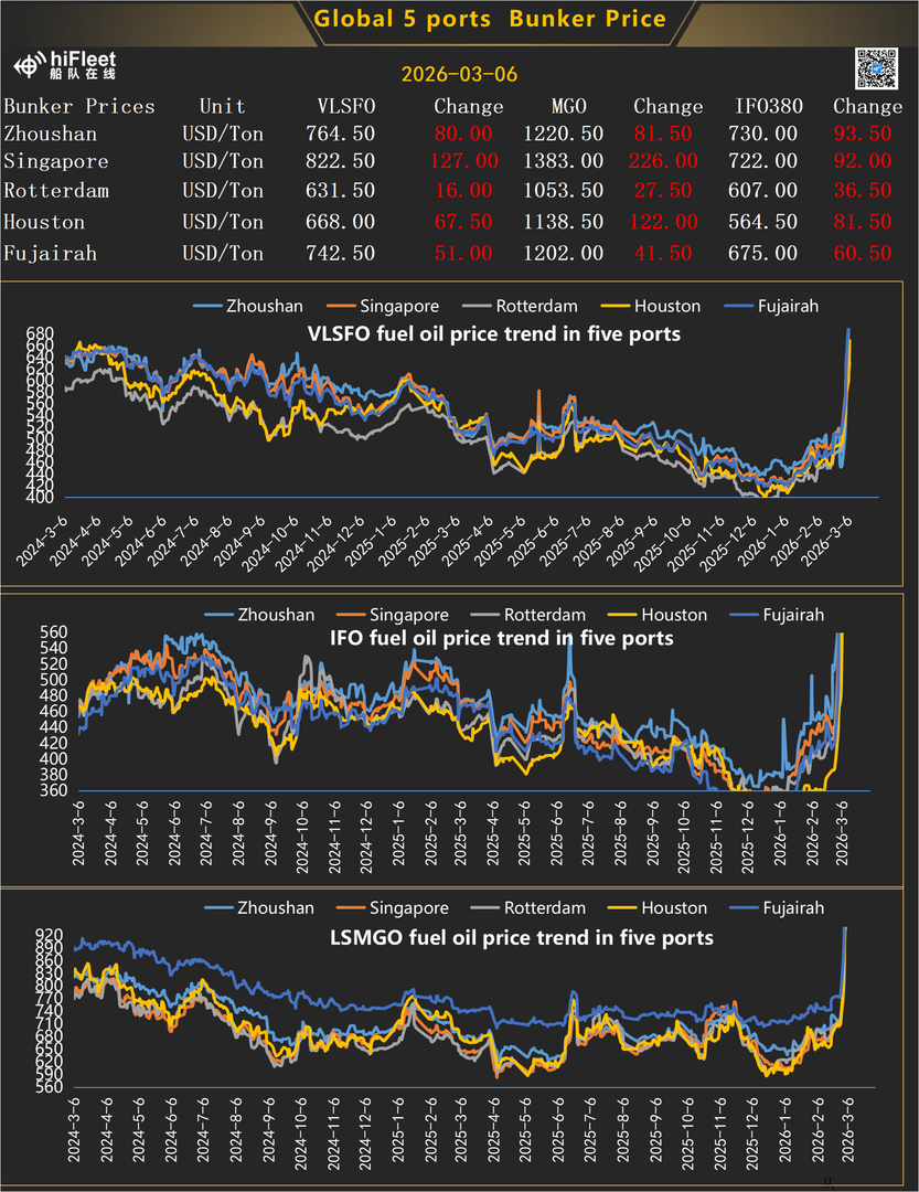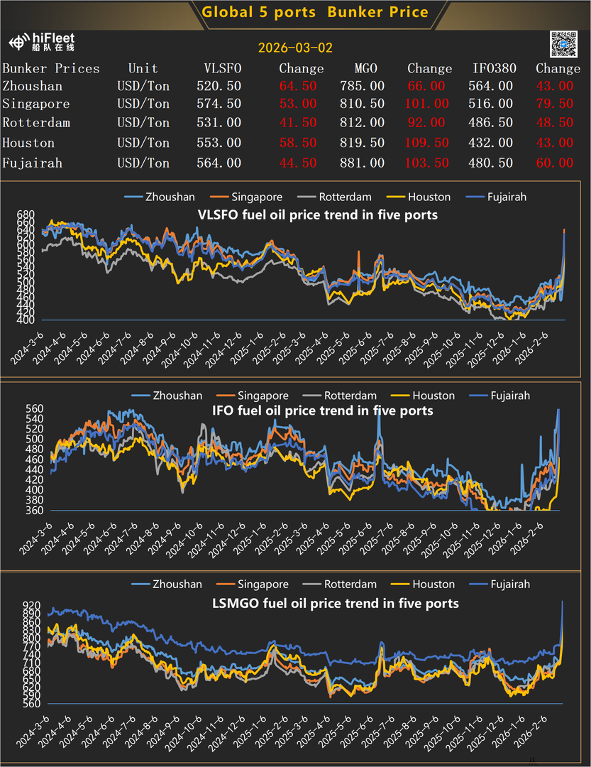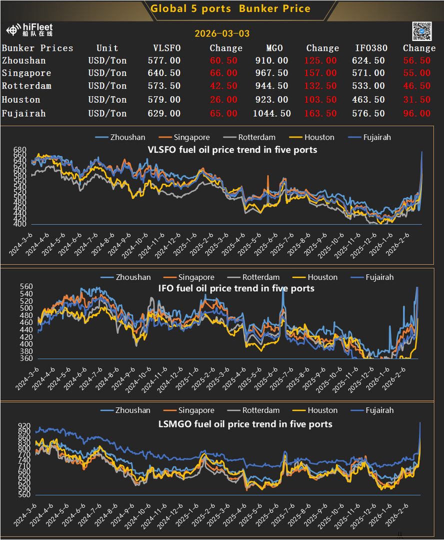 3.03.2026 Global 5 Port Bunker Prices
