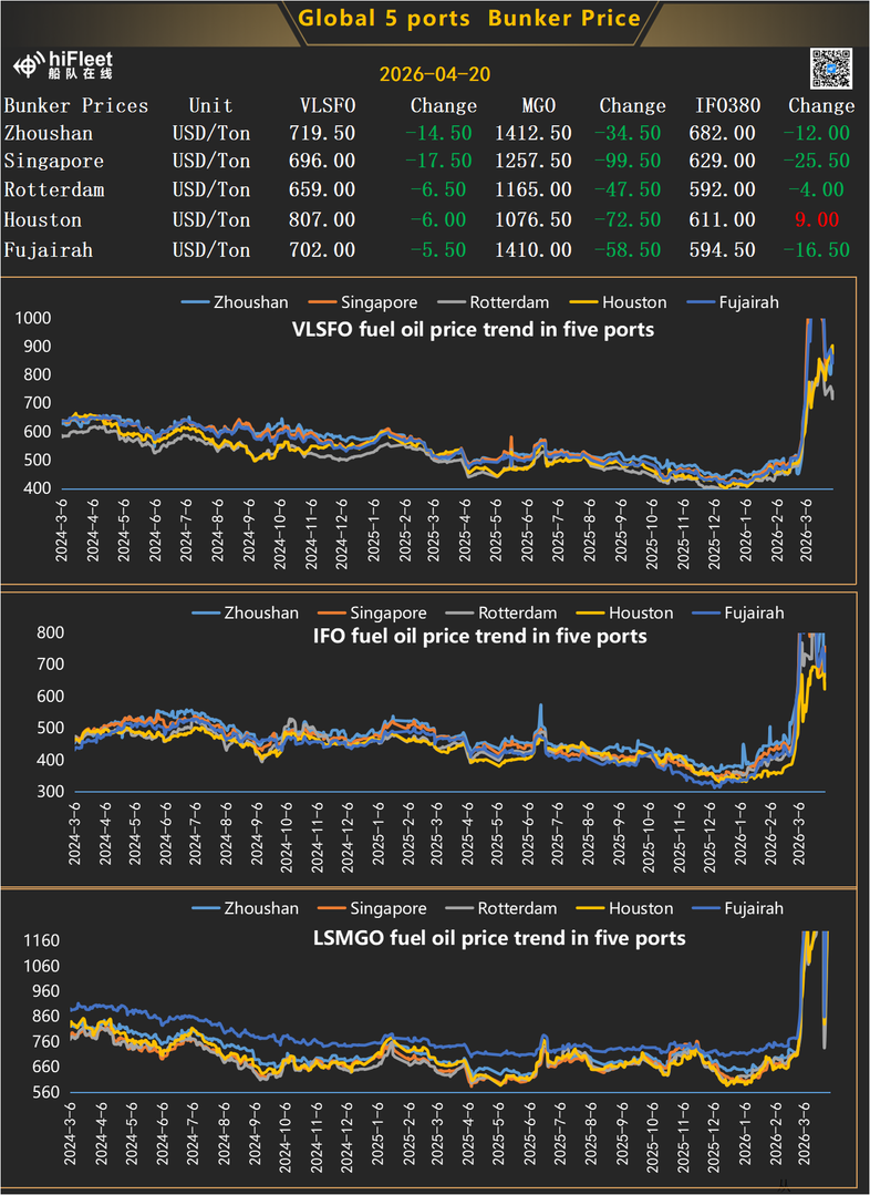 4.20.2026 Global 5 Port Bunker Prices