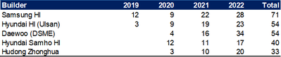 Table 1 Order Quantity of LNG Ship in Each Shipyard