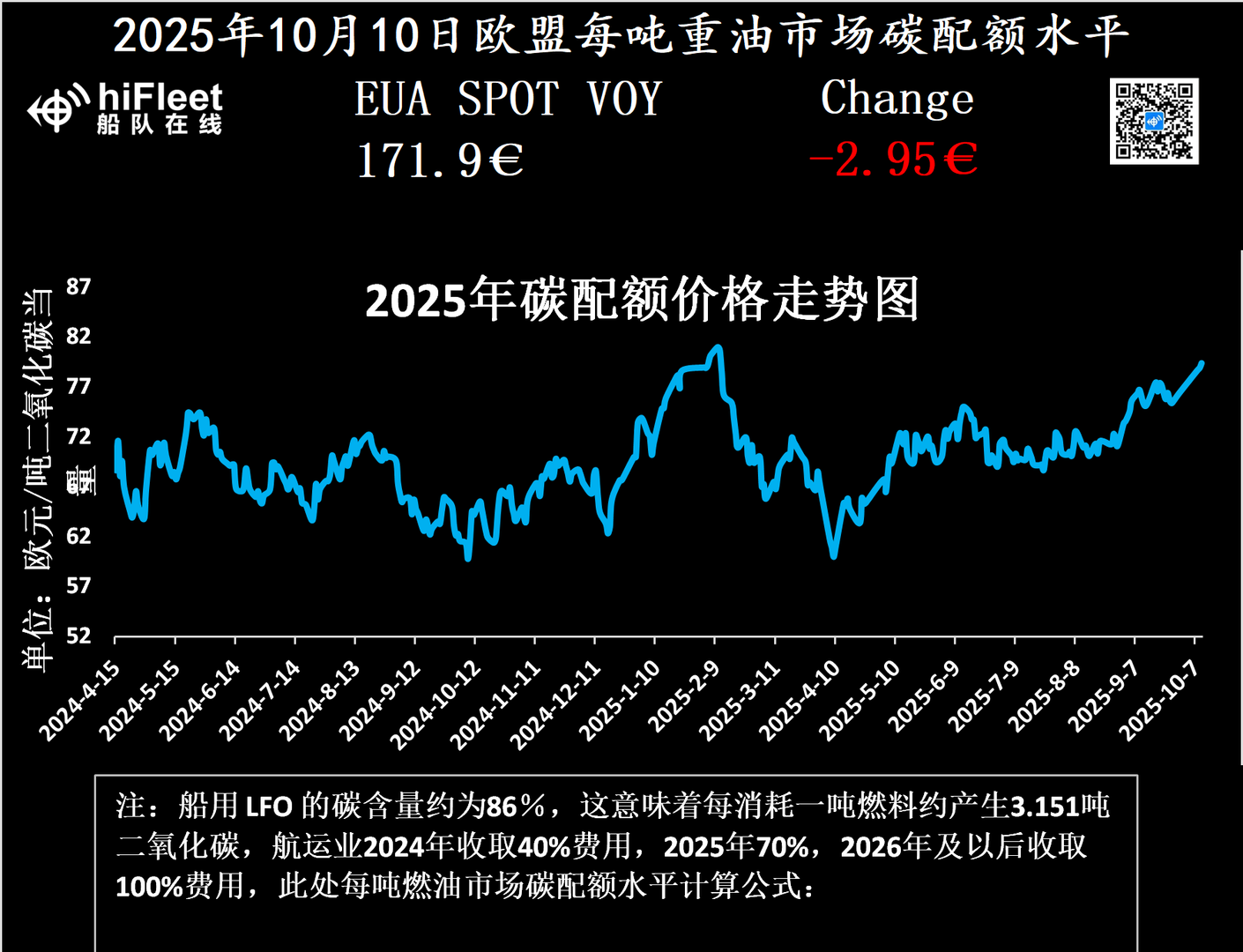 欧盟碳配额价格及每吨重油碳配额水平