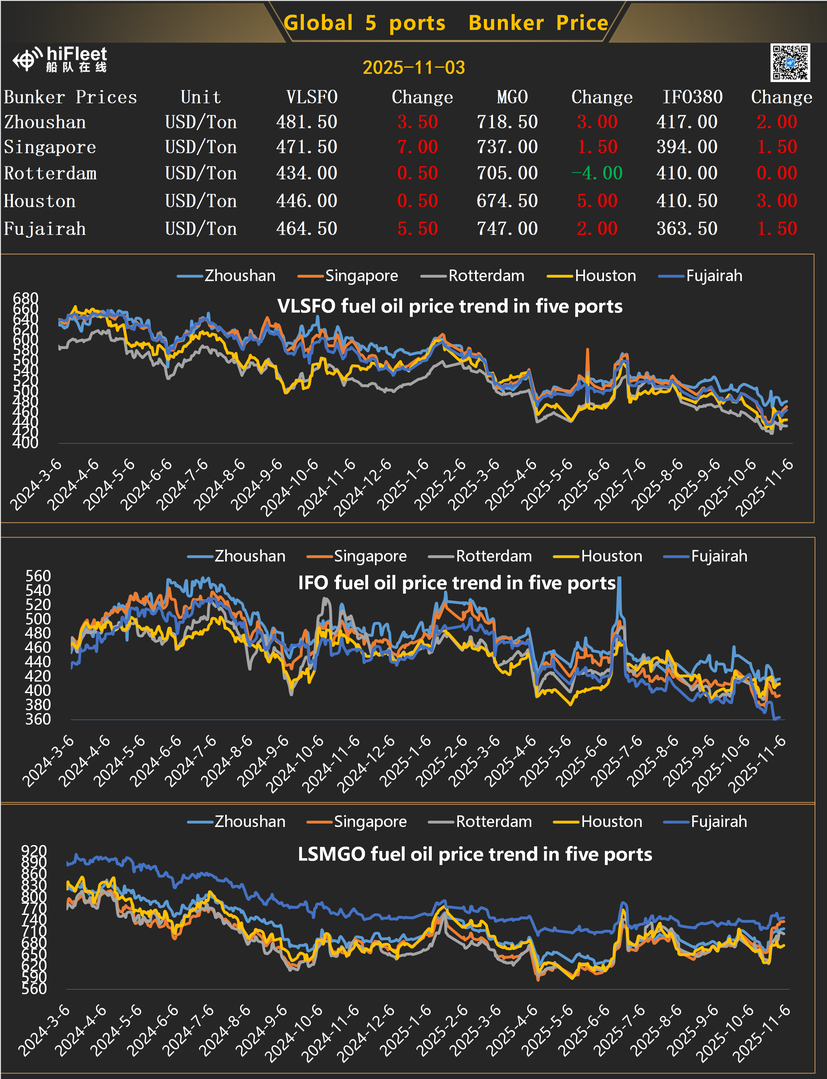 全球五港燃油价格