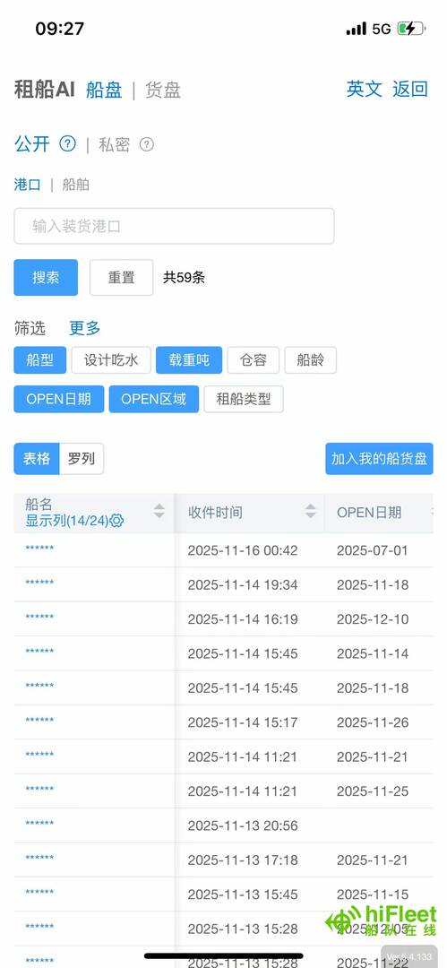 - 进入租船AI的“公开”页面,点击“加入我的船货盘”。