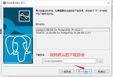 还可以用另外一种方式安装postgis组件。即跳过此步骤,不要联网安装postgis组件,而是在安装好postgresql后,下载离线的postgis安装包,再进行postgis组件的安装。