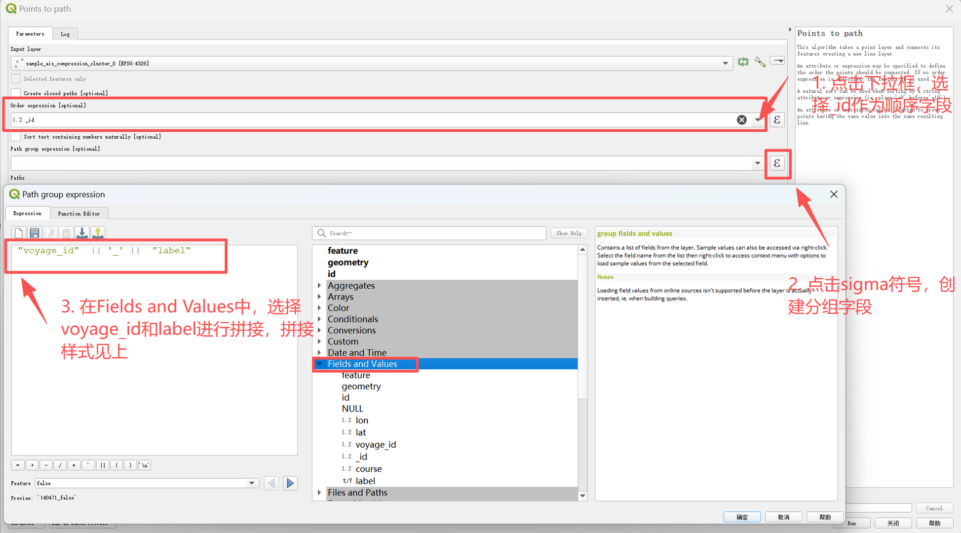 3. 将轨迹点按_id顺序、按voyage_id和label分组,连接成线