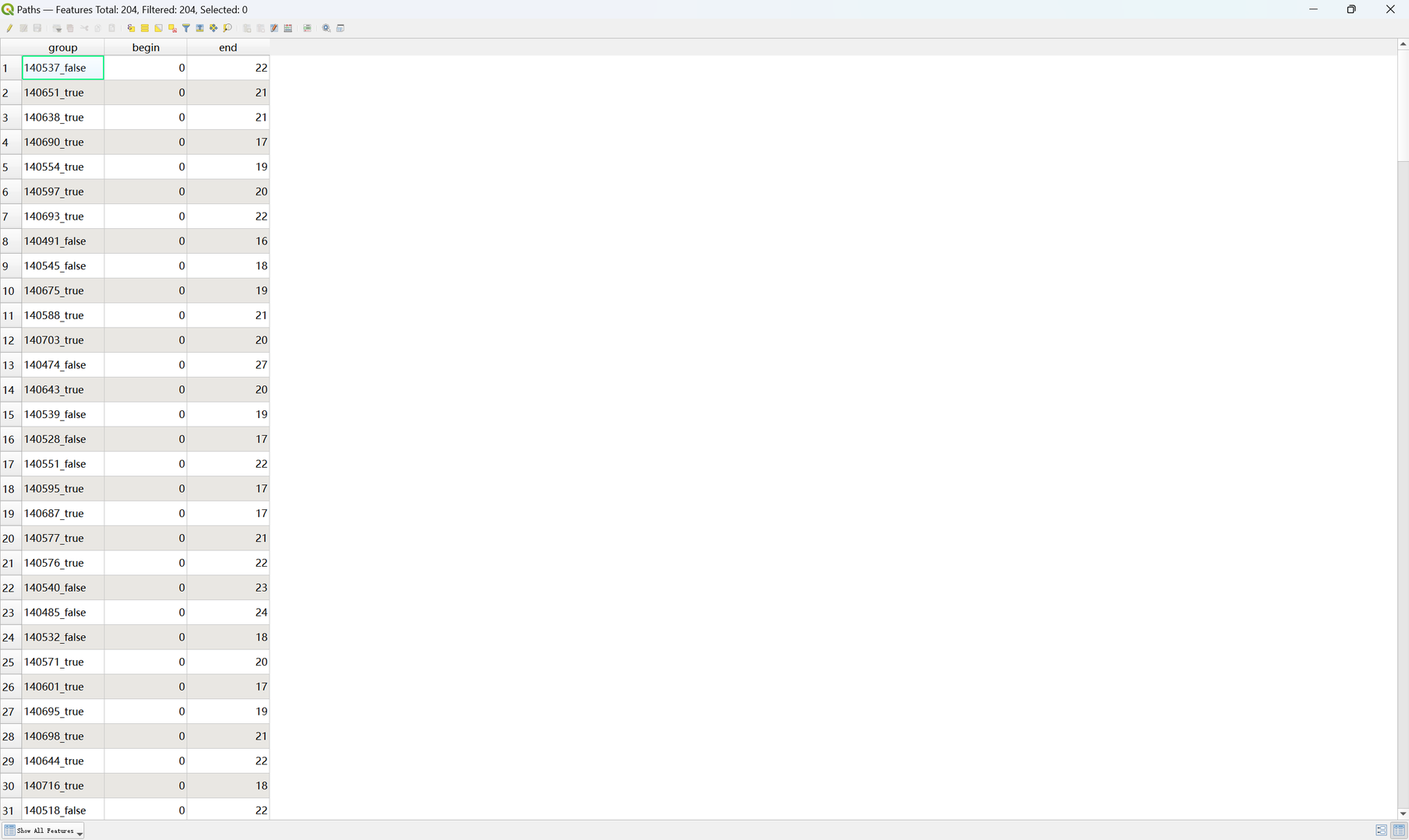 1)右键Paths图层,点击Open Attribute Tables即可查看轨迹线当前的字段,可见voyage_id和label此时是通过下划线拼接成了字符串的样式
