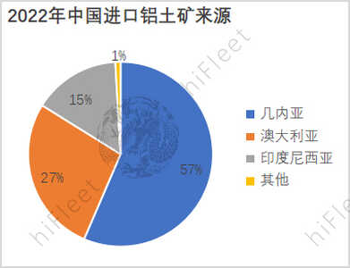 中国铝土矿进口来源对比(数据来源:HiFleet)