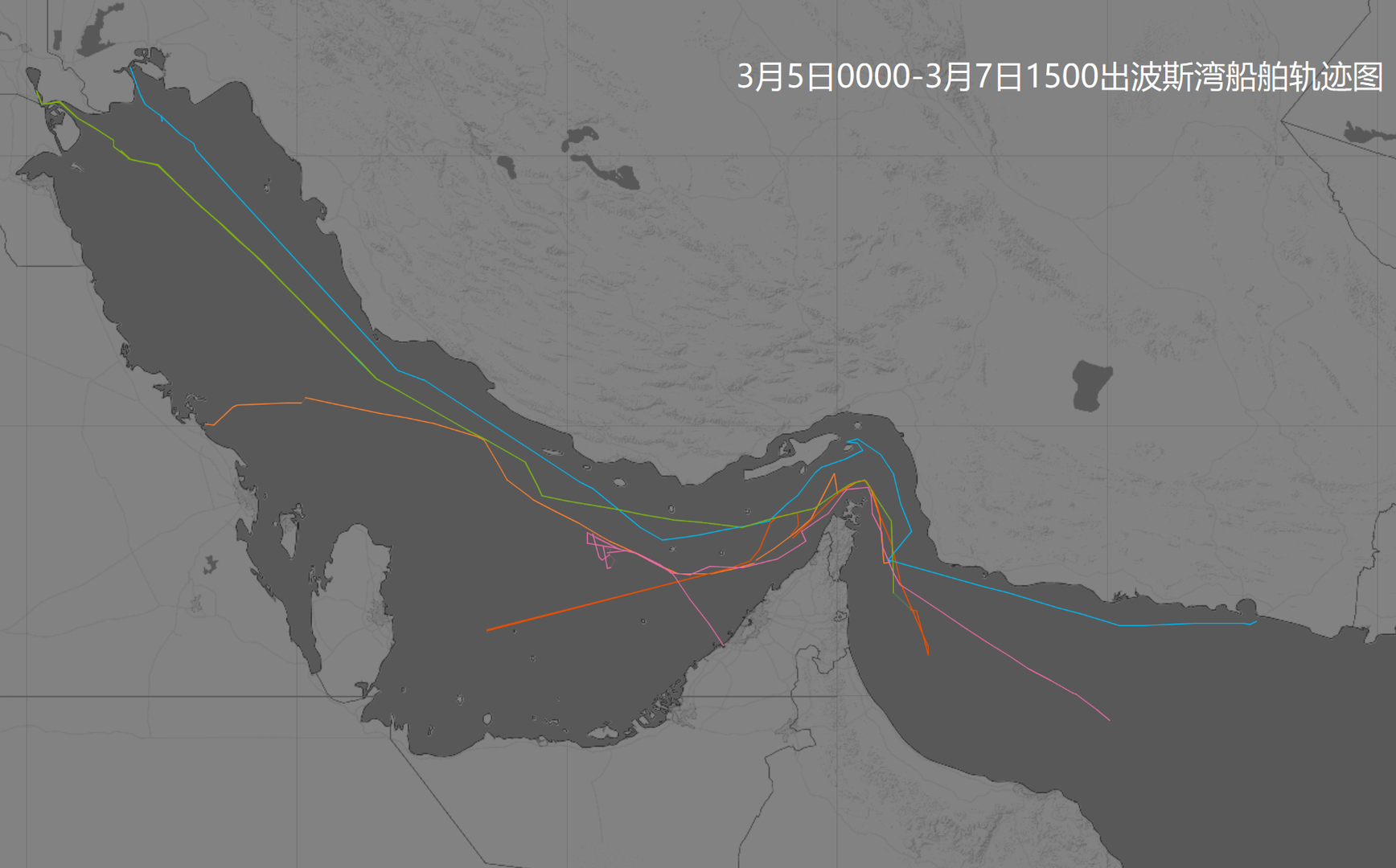 近3日出波斯湾船舶轨迹图