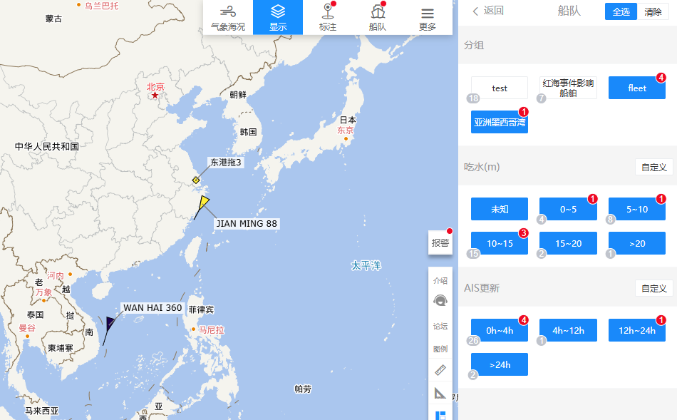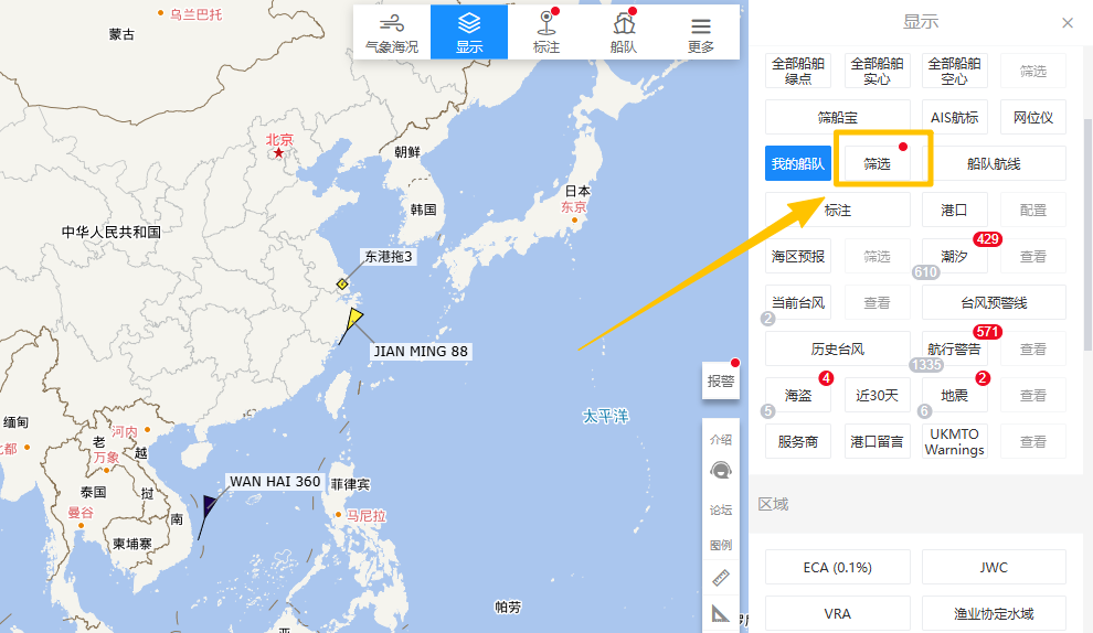 也提醒大家注意这个功能,不要忘记有这个记忆功能,如果发现海图上关注的船舶数量少了,要先检查下是不是被其它用户“筛选”了。