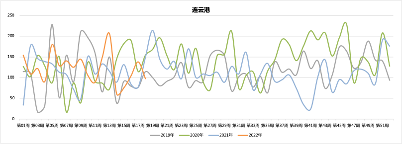 其余沿海港口共计到港821.1万吨,环比减38.4万吨。2022年1-18周,其余沿海港口累计到港15317.4万吨,累计同比减3.76%。