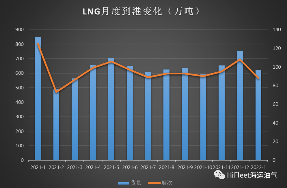 注:*HiFleet LNG月报到港统计对象为LNG专用运输船,罐装LNG不在统计范围之内