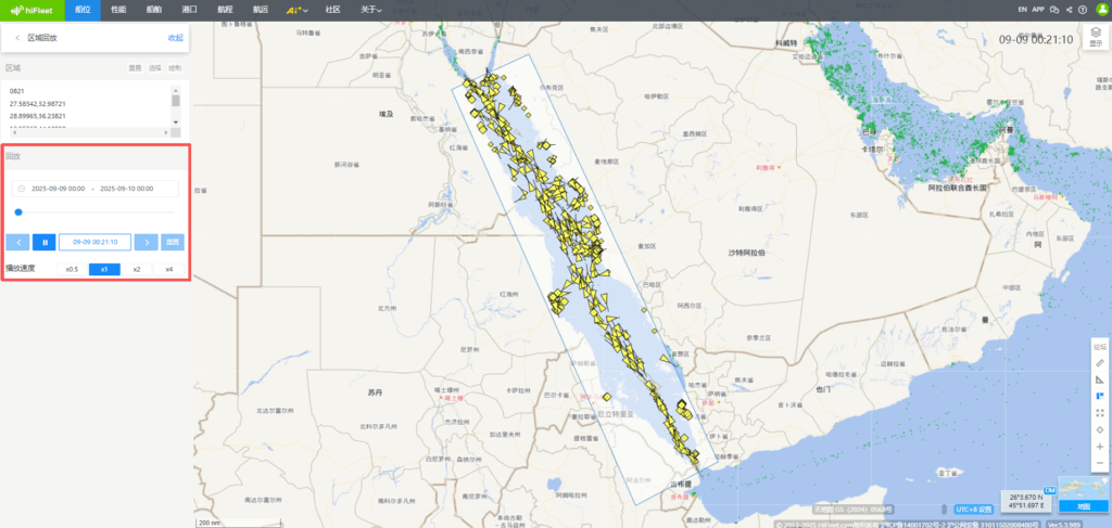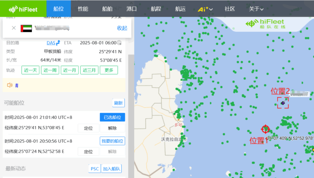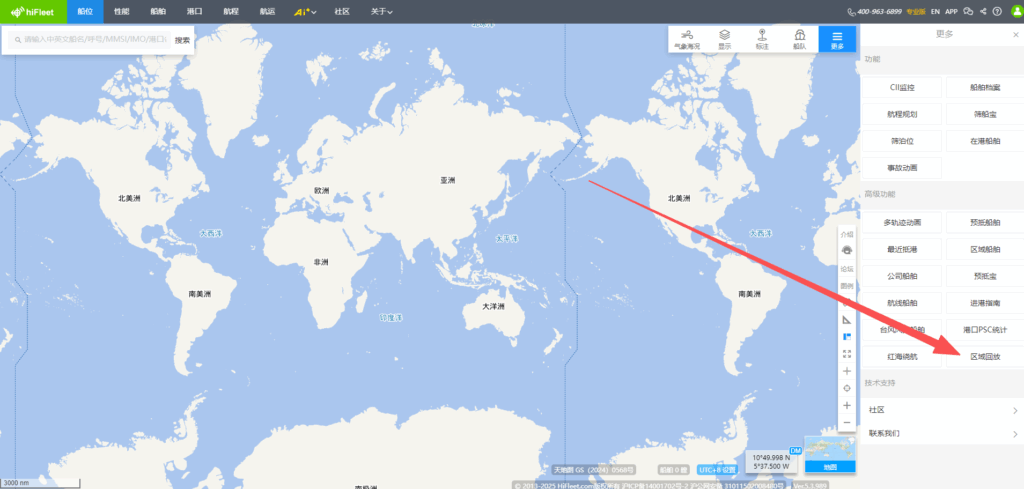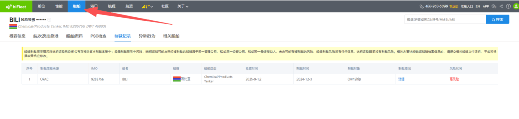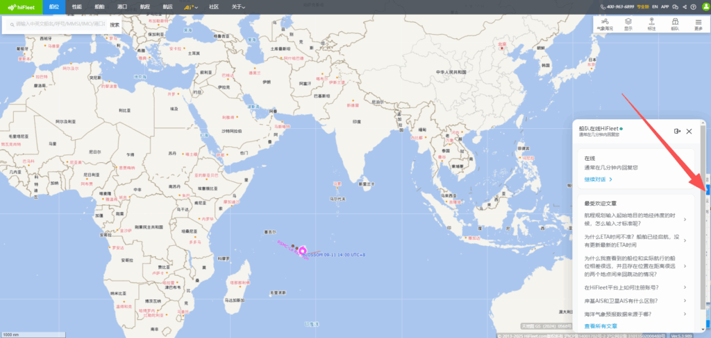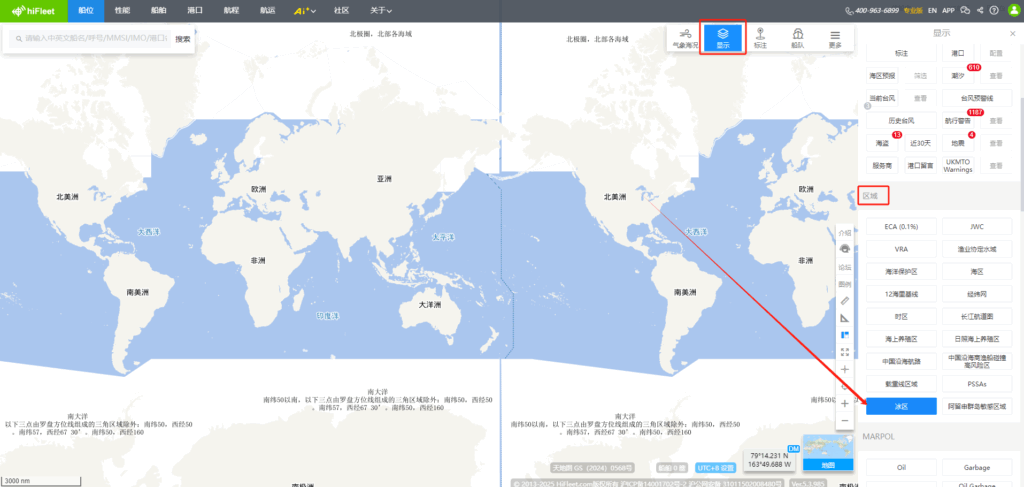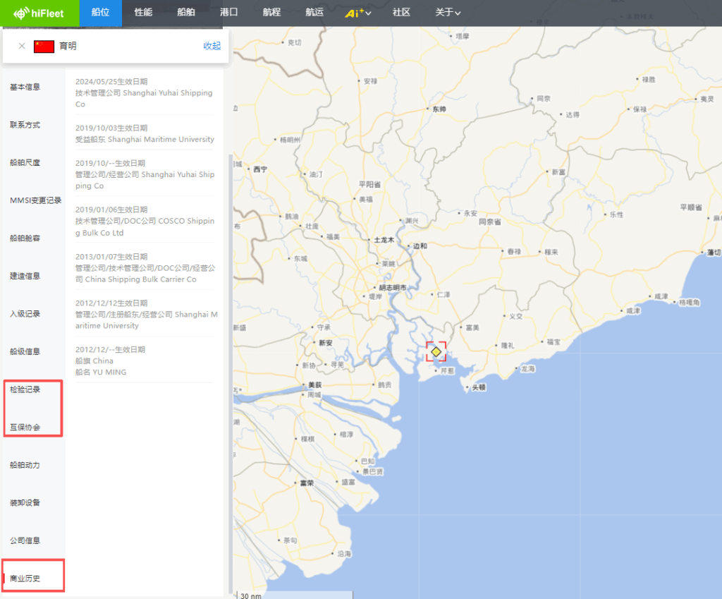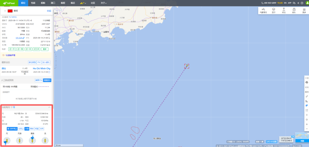 Ver.5.3.989 显示-区域新增“冰区”、“阿留申群岛敏感区域”,“更多”功能中新增区域回放,船舶“当前”页面新增当前海况功能,船舶档案新增“检验记录”、“互保协会”、“商业历史”版块,页面新增船舶“制裁记录”,船舶“当前”页面新增“更正套牌船位”功能,HIFLEET平台在线客服页面优化,接入ai智能机器人 1.【新增】显示-区域新增“冰区”、“阿留申群岛敏感区域” HIFLEET平台右上角“显示”-“区域”版块新增“冰区”和“阿留申群岛敏感区域”,用户可根据需要点击查看。 2.【新增】“更多”功能中新增区域回放 HIFLEET平台上线区域船舶交通回放功能,可在右上角“更多”-“高级功能”进入“区域回放”页面,点击“选择”直接选择已经设置过的区域标注进行回放,也可点击“绘制”立即绘制目标区域,根据屏幕上光标提示,完成区域绘制后,即可选择对应时间,进行区域回放。时间选择框内,可以调速,以及点击进度条来控制进度,海图右上角也有显示对应时间。 在显示菜单中,还可以切换底图,以及添加各种图层。 3.【新增】船舶“当前”页面新增“当前海况”功能 点击船舶后,可在船舶信息框内查看AIS船位/更新时刻的海况、能见度和海水温度等信息。并可以查看首向上/北向上等模式下的船舶受风/浪/流影响的情况,便于分析船舶速度快慢的原因,船舶航行时,该模块自动打开,停泊时可查看气象预报信息。 4.【新增】船舶档案新增“检验记录”、“互保协会”、“商业历史”版块,页面新增船舶“制裁记录” 船舶档案新增“检验记录”、“互保协会”、“商业历史”版块,用户可进入船舶资料页面或船舶档案页面查看。 船舶档案页面新增船舶“制裁记录”,可点击导航栏中的“船舶”进入船舶档案页面查询船舶详细档案信息及制裁记录。 5.【新增】船舶“当前”页面新增“更正套牌船位”功能 当用户船队中的船舶MMSI号码被其他船舶套用时,船舶的位置会错误地显示在海图上,如上图所示,船舶存在2个可能的船位,用户在左侧可能船位模块,通过点击正确位置对应的“我要的船位”按钮,海图上的船舶位置就会持续更新在用户选择位置。 6.【优化】HIFLEET平台在线客服页面优化,接入ai智能机器人 用户可在侧边栏工具中点击“在线客服”工具与ai智能机器人实时对话。 146